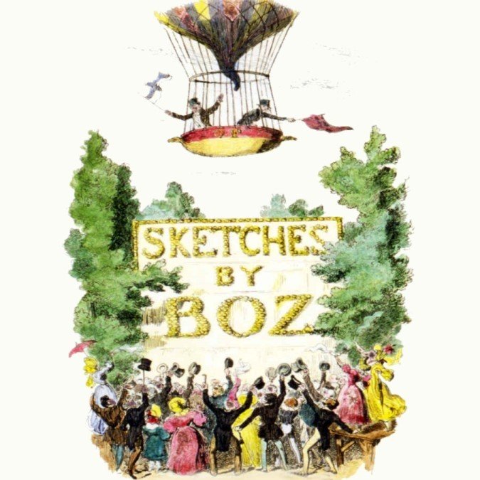 Sketches by Boz: short stories by the younger Charles Dickens [Boz], published between 1833 and 1836. Dickens sketches first appeared in The Monthly Magazine in December 1833, and although he continued to place pieces in that publication, none of them bore a signature until August 1834, when The Boarding House [in Series Two] appeared under the strange pen-name Boz. A verse in Bentley’s Miscellany for March 1837 recalled the public’s perplexity about this pseudonym: